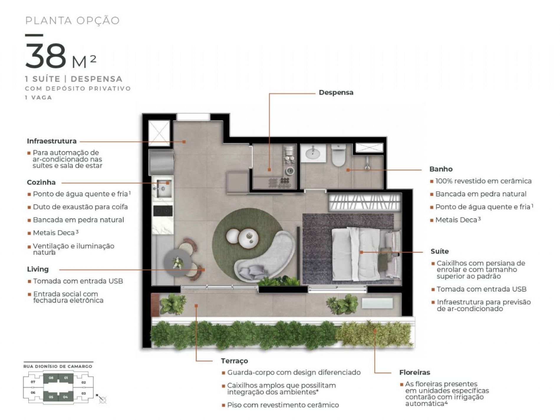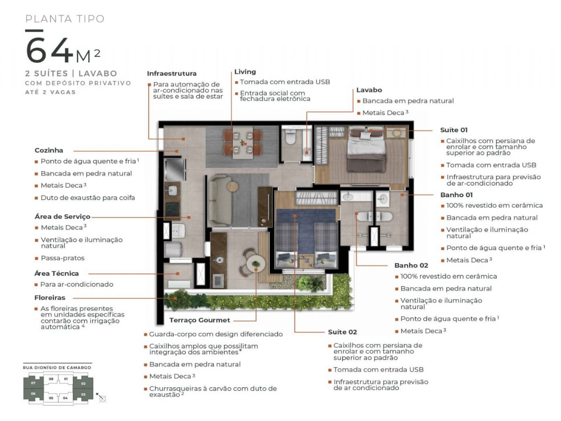 Detalhes: Apts. 38M² e 64m², 1 a 2 dorms Até 2 suítes